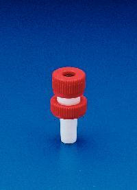 SAFE-LAB* Thermometer Adapter Standard Taper Joint, Teflon*^ Teflon body with Viton* O-ring for air tight vacuum work. Threaded polypropylene screw cap on top with inside O-ring. Standard taper joint size: 14/20.