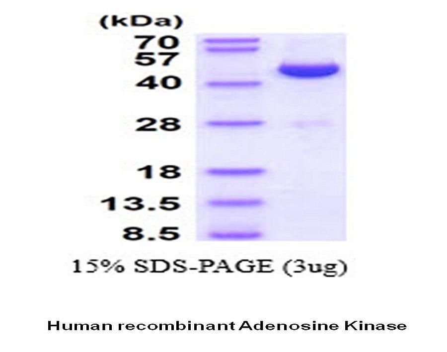 Adenosine kinase 10ug^ Adenosine kinase, Recombinant, Source E.coli, Purity by SDS-PAGE > 95%, Biological Activity Specific activity > 30 pmol/min/ug, In 20 mM Tris-HCl buffer (pH 8.0) containing 1 mM DTT, 20% glycerol, 1 mM EDTA, 50 mM NaCl, Size: 10ug