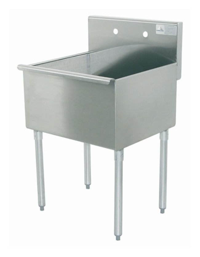Available with one or two compartmentsConstructed of 16-gauge 430 stainless steel with galvanized tubular steel legsFaucet holes are on 8 in. (20.3cm) centers for 0.5 in. (1.3cm) IPS hot and cold waterWaste drains are 1.5 in. (3.8cm) IPS basket typeFeature quick, efficient Quik-Drain drainage