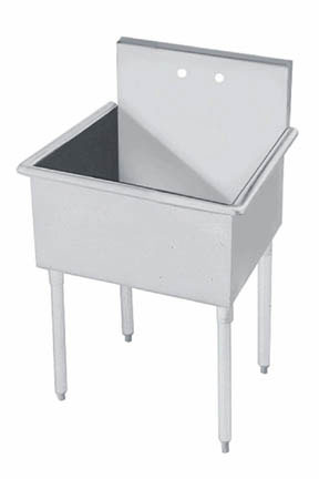 Available with one or two compartmentsConstructed of 16-gauge 430 stainless steel with galvanized tubular steel legsFaucet holes are on 8 in. (20.3cm) centers for 0.5 in. (1.3cm) IPS hot and cold waterWaste drains are 1.5 in. (3.8cm) IPS basket typeFeature quick, efficient Quik-Drain drainage