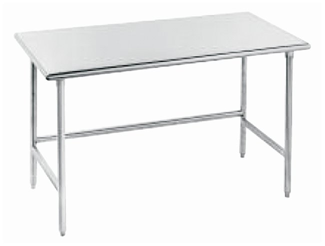 Wide, adjustable, and with a turned up edge for wall protection, the Advance Tabco Stainless-Steel Work Table is made for, and can take, heavy use in nearly all environments.