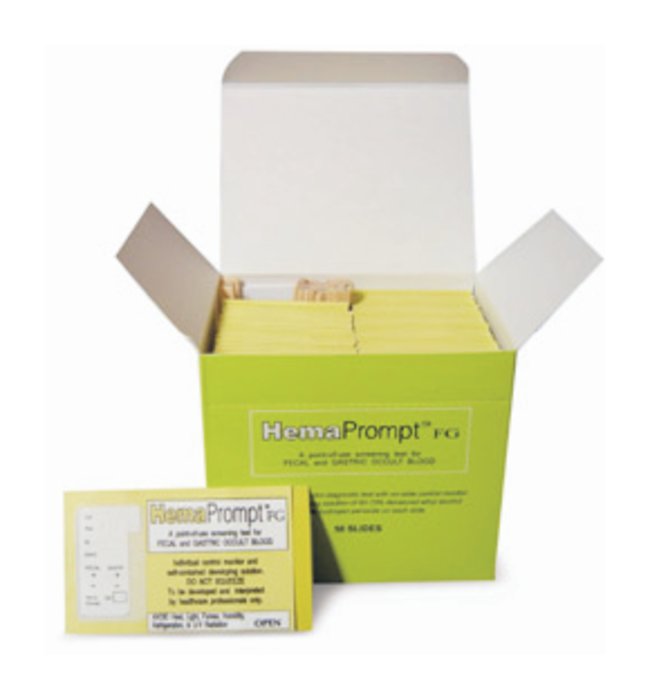 PortabilityAvoidance of cross-contaminationNo developer bottle to lose, misplace, or misuseNo wait time to apply developer after specimen applicationResults available in 1 minuteStandardized amount of developer solutionOnly one item to stockHemaPrompt FG: For fecal and Gastric occult blood testHemaPrompt: For fecal Specimens onlyPreliminary screening as an aid to diagnosi