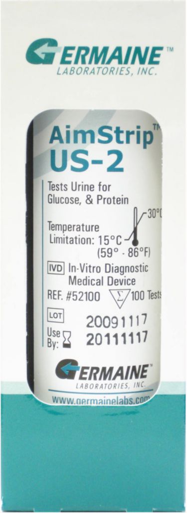 Test Strip^ Aimstrip* Us-2, Urinalysis Dipstick, Reagent Strips For The Qualitative Detection Of Glucose & Protein In Urine, Results Within 1 Minute, Sensitivity: Glucose At 50 - 100 Mg/Dl, Protein At 15 - 30 Mg/Dl Albumin, Size: 100 Tests Per Bottle