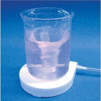 Additional Info Eliminates sparking hazardCompact unitStirrer is powered by a low pressure air supply that eliminates the sparking hazard from electrical sources.Compact unit operates using only 3 to 8 psi (21-55 kPa) air pressure and it is useful for stirring vesseals up to 1 liter. Tubing is provided to connect to an air supply.All parts are molded from high impact polystyrene to ensure long life and easy clean up. Stirrer measures 4” in diameter x 3/4” high (102 mm dia. x 19 mm H).Stirbar Actual Size Guide