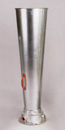 Aluminum base and galvanized steel horn. Expel explosive and hazardous vapors or fumes from underground spaces. No moving parts—horns operate on compressed air or steam. Horn 18-503 meets ventilation requirements for underground storage tanks. Static grounding lug is standard on all models. Horns stand on lightweight aluminum base.