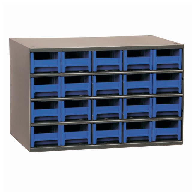 For heavy-duty, color-coded storage/organizationSuper durable cabinets are available with five different drawer sizes and colors.CabinetHeavy-duty welded-steel frame with long-lasting powder-coated finishBuilt-in nesting feet for safe, stable stackingFour keyhole slots for easy wall mountingDesigned to fit side-by-side on standard 36 in.-wide shelvingDimensions: 11D x 17W x 11 in.HDrawersStrong, high-impact polystyrene drawers are rust, corrosion and dent-proofLabel holder and transparent window for content identificationDrawers available in black, blue, gray, red and yellowTwo dovetailed dividers per removable drawer; can be divided into as many as eight compartmentsRear stop tab prevents spills and lossOrder InfoReplacement drawers and additional dividers available; contact your Fisher Scientific Sales Representative for information.
