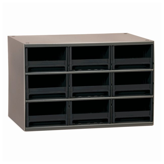 For heavy-duty, color-coded storage/organizationSuper durable cabinets are available with five different drawer sizes and colors.CabinetHeavy-duty welded-steel frame with long-lasting powder-coated finishBuilt-in nesting feet for safe, stable stackingFour keyhole slots for easy wall mountingDesigned to fit side-by-side on standard 36 in.-wide shelvingDimensions: 11D x 17W x 11 in.HDrawersStrong, high-impact polystyrene drawers are rust, corrosion and dent-proofLabel holder and transparent window for content identificationDrawers available in black, blue, gray, red and yellowTwo dovetailed dividers per removable drawer; can be divided into as many as eight compartmentsRear stop tab prevents spills and lossOrder InfoReplacement drawers and additional dividers available; contact your Fisher Scientific Sales Representative for information.