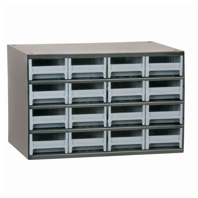 For heavy-duty, color-coded storage/organizationSuper durable cabinets are available with five different drawer sizes and colors.CabinetHeavy-duty welded-steel frame with long-lasting powder-coated finishBuilt-in nesting feet for safe, stable stackingFour keyhole slots for easy wall mountingDesigned to fit side-by-side on standard 36 in.-wide shelvingDimensions: 11D x 17W x 11 in.HDrawersStrong, high-impact polystyrene drawers are rust, corrosion and dent-proofLabel holder and transparent window for content identificationDrawers available in black, blue, gray, red and yellowTwo dovetailed dividers per removable drawer; can be divided into as many as eight compartmentsRear stop tab prevents spills and lossOrder InfoReplacement drawers and additional dividers available; contact your Fisher Scientific Sales Representative for information.
