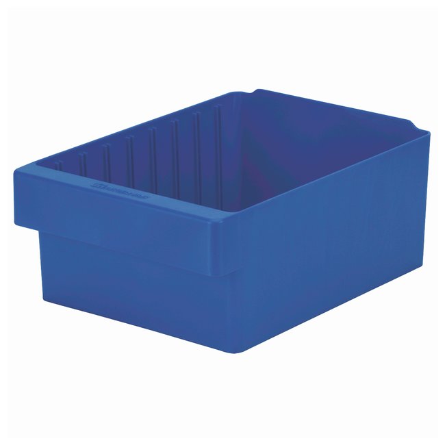 The drawers are designed for a variety of environments: healthcare, industrial and more. Will keep supplies, parts, tools and other materials secure and dust-free.Compatible with most shelving: available in five sizes and 12 or 18 in. depthsRed, Blue, Yellow or Gray drawers made of high-impact polystyreneCrystal Clear drawers made of durable acrylic blendEasy to label and color code inventory for quick identificationDrawers can be stacked to save spaceSturdy backstop tab ensures secure hanging from shelvesWide front handles afford sure gripping when AkroDrawers are fully loadedDividers available for neat separation of content