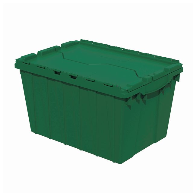Attached Lid Containers: 65 lb. Capacity, Reusable shipping, distribution, order picking and storage containers, Case of 6