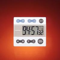 Here is the corrected text: A microcomputer chip allows you to set four separate channels for simultaneous count-up or count-down procedures. The large 1.9 cm LCD display permits easy viewing from across the lab. Additional features include a stopwatch, time-out, and time-of-day display. You can use all four channels simultaneously as count-up stopwatches or in any combination of count-up/count-down. With the touch of a button, the display returns to the previously programmed countdown time. The extra-loud, high-decibel alarm sounds for one minute and may be silenced manually. Finger-sized keys make it easy to set times and change channels. The magnetic back allows the timer to be placed on any metal surface. The unit also features a flip-open easel for standing on the lab bench, a spring fastener for clipping to a notebook or clipboard, and a hole for use with a lanyard. When zero is reached, the timer starts counting up to show the time elapsed since alarming. Key benefits include a massive ³/₄" high display that allows viewing from across the room, extra-loud, high-decibel alarms that sound for one minute and may be silenced manually, timing capacity to 99 hours, 59 minutes, and 59 seconds with a 1-second resolution, and remarkable memory that returns the display to previously programmed countdown time at the touch of a button. A serial-numbered certificate is provided from an ISO 17025 calibration laboratory accredited by A2LA to indicate instrument traceability to standards provided by the National Institute of Standards and Technology. The timer is supplied with a one-year, 1.5 V silver-oxide battery, and replacement batteries are available separately.