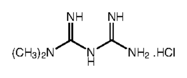 1,1-Dimethylbiguanide hydrochloride (metformin hydrochloride, CAS # 115-70-4) is the salt of methylated biguanide, a compound exhibiting anti-hyperglycemic properties.