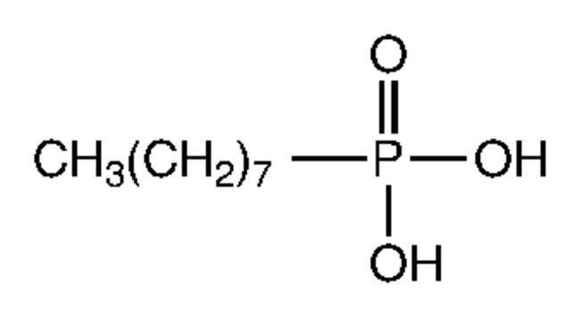 1-Octylphosphonic acid is a basic building block and used in the preparation of various pharmaceutical compounds and chemical products. It is supported with calcium hydroxyapatite and used in the dental field as corrosion inhibitor and organic building block. It acts as a corrosion inhibitor in metallic household surfaces such as faucets and drains as well as prevents the rusting of can or dispenser. It is also used in the synthesis of octyl-phosphonic acid dimethyl ester by reacting with iodomethane in presence of CS2 CO3.