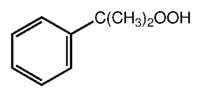 Cumene hydroperoxide is used in the preparation of polystyrene nanocapsules. It acts as a curing agent for polyester resins and as an oxidizer in organic chemical reactions. It serves as an initiator for radical polymerization especially for acrylate and methacrylate monomers. It also employed as an intermediate in the cumene process for developing phenol and acetone from benzene and propene. Further, it is used as an epoxidation reagent for allylic alcohols and fatty acid esters. In addition to this, it is also used to prepare methylstyrene, acetophenone and cumyl alcohol.