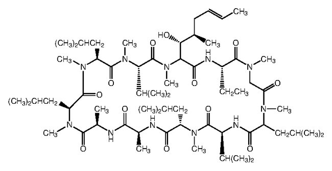 Cyclosporin A, CAS # 59865-13-3, is a compound that shows immunosuppressive, antifungal, antirheumatic, and dermatologic activities. It is also a calcineurin and enzyme inhibitor.