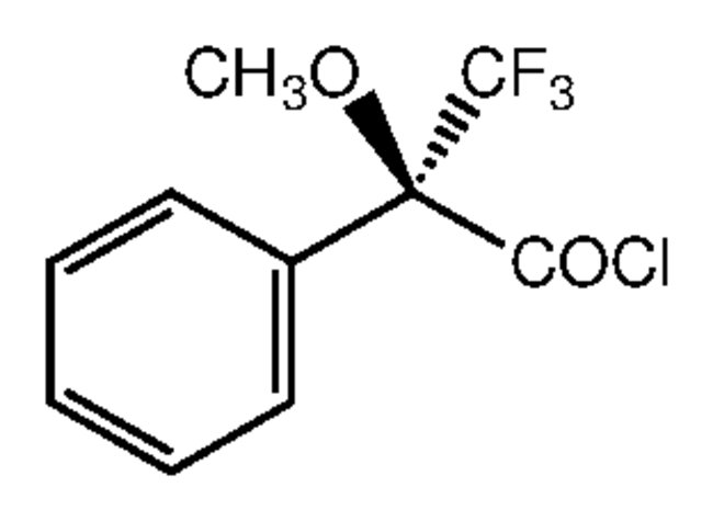 (S)-( )-α-Methoxy-α-(trifluoromethyl)phenylacetyl chloride is used in the preparation of natural products and pheromones. It is also employed as a derivatization enantiomeric purity reagent used for the determination of enantiomeric purity of alcohol and amines by gas chromatography.