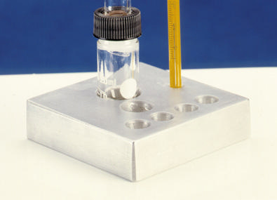 Aluminum heat transfer block *w2* Minum-Warer* 13mm hole used to heat a 13 x 100 test tube^