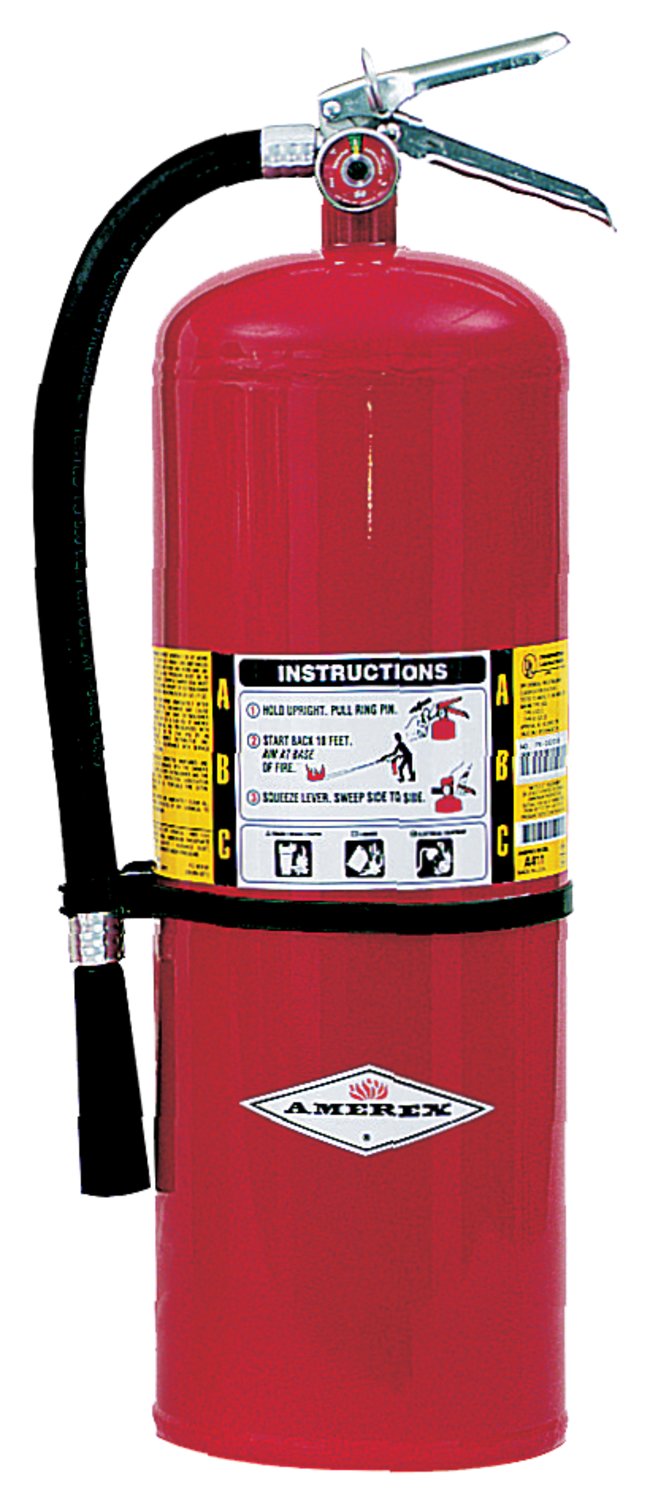 ABC extinguishers utilize a specially fluidized and siliconized mono ammonium phosphate dry chemical which chemically insulates Class A fires by melting at approximately 350°F and coats surface to which it is applied. It smothers and breaks the chain reaction of Class B fires and will not conduct electricity back to the operator.Stored pressure designDependable drawn steel cylindersDurable high gloss polyester powder paintAnodized aluminum valve bodyAnodized aluminum handle and leverTemperature range: -65°F to 120°F