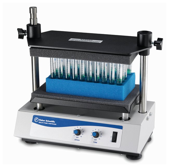 Mix up to 50 samples at once.Vortexing action is created by holding the top tray of the vessel securely in place while the bottom tray moves freely in a defined, 3.6mm eccentric orbit. Powerful permanent, continuous-duty motor delivers quiet, rattle-free mixingTop plate adjusts along two stainless-steel posts; removable for easy sample accessRugged corrosion-resistant, stainless-steel baseSuction-cup feet dampen motion and prevent slidingOrbit: 3.6mmSpeed range: 1200-2400rpmAutomatic timer (0 to 60 sec. for simple repeat procedures)5 year warrantyThis product(s) resides on a Fisher Scientific GSA or VA contract. If you are viewing this page as a nonregistered user, the price(s) displayed is List Price. To view your GSA or VA contract pricing, log in using your account number, or become a registered user by contacting one of our Customer Service teams. You can also view your contract price by searching for this item(s) on GSA Advantage. To place an order, contact Fisher Scientific Customer Service.CertificationsUL, CUL listed; CE marked.Warranty and Services5 year warranty