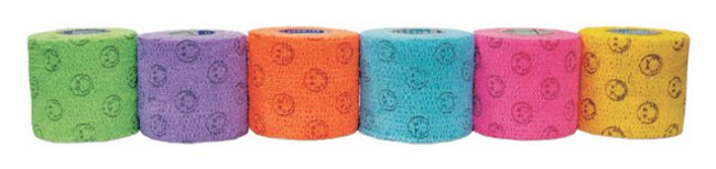 Smiley faces on Neon Pink, Yellow, Lavender, and Light BlueEasyTear patented technology means no scissors neededSoft and strong so it will not slipControlled compression will not constrictEasy to apply and removeAvailable in a variety of sizesUS Patent 5,762,623