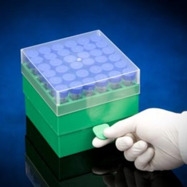 With numerically labeled and sturdy cells, the polypropylene box offers security and organization for up to 36 15 mL tubes. This product also comes with a lid that provide safer storage and at the same time convenience for the user to see the tubes and its positions. The box measures 5.67" W x 5.67" D x 5" H.