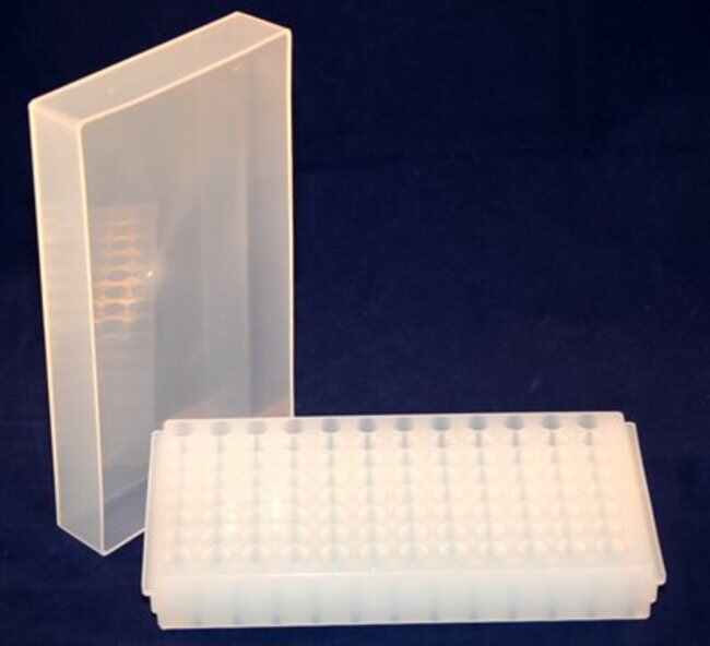 This tube rack provides secure storage for up to 96 1.5 and 2.0 mL tubes. This product features alphanumeric sample identification that permits easy organization. It includes a lid that has a snug fit and has a tall height to give space for screw-cap microcentrifuge tubes. This product is sold in a pack of 5.