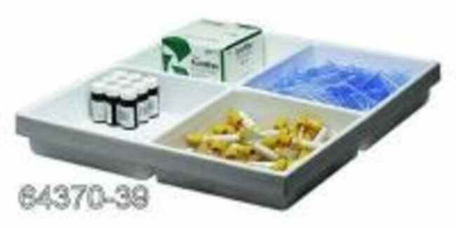 This tray can store and sort supplies of all sizes and shapes. Trays are made of ABS, color white, and chemical resistant. Small Utility Tray 17 in. L x 13 in. W x 2.5 in. H.
