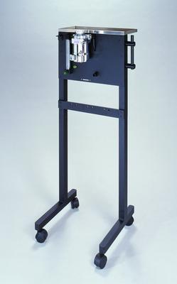 Cap^ Mobile Cart (V-10) Anesthesia Machine shelf 19inchesx9inches with 3/4inches lip with 4 wheels, 2 leg design for more stability. Handle doubles as a hose and breathing circuit hanger. Cross bar holds E cylider reglator assemblies.