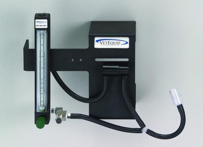 Cap^ Wall Mount (V-9) Anesthesia Machine with a 0 to 4 lpm oxygen flowmeter, an oxygen flush assembly, varporizer inlet and outlet, predrilled holes to fit most vaporizer models, a 10 foot high pressure oxygen hose with DISS (female) fittings, tubing for component connections and standard outlet.