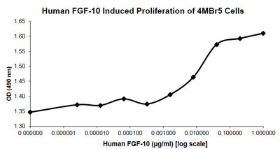 Recombinant Human Fgf-10^ Recombinant Human Fgf-10, Animal Free (Af) (Keratinocyte Growth Factor 2) Non-Glycosylated Protein, 170 Aa, Mw: 19.2 Kda. Activity: Determined By A Proliferation Assay Using 4Mbr 5 Rhesus Monkey Epithelial Cell. Source: E.Coli, Store At -20 C Prior To Reconstitution. 5Ug