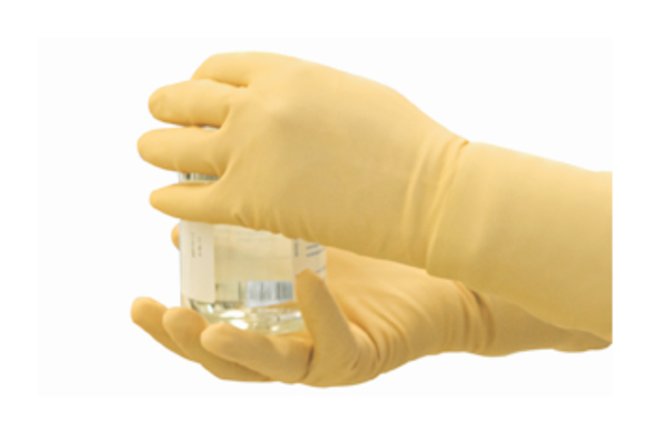 Thick, clean and sterile latex with a hand-specific design for comfort and dexterity. Recommended for Class 100/ISO 5 cleanroom environments.