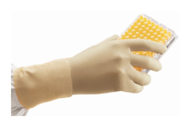 Thick, clean and sterile latex with a hand-specific design for comfort and dexterity. Recommended for Class 100/ISO 5 cleanroom environments.