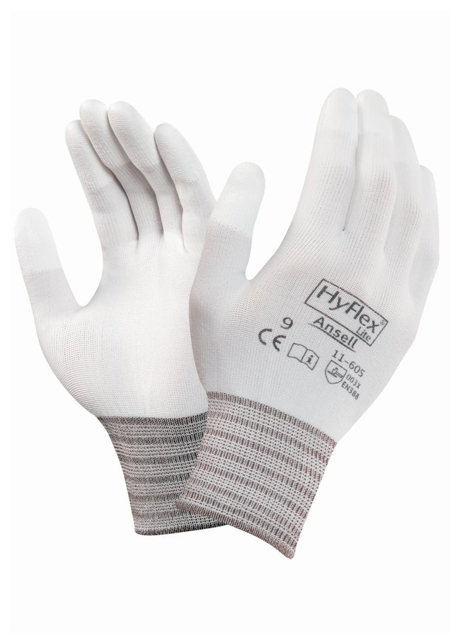HyFlex™ 11-600 White Nylon Gloves with Polyurethane Coating, Dozen of 12