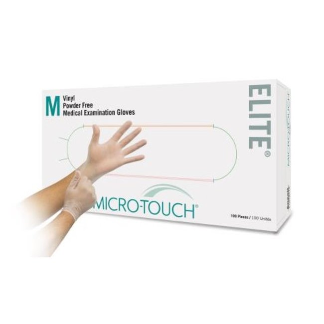 MICRO-TOUCH Elite Vinyl Gloves, Vinyl, powder free examination glove for use in low-risk clinical applications, Pack of 100