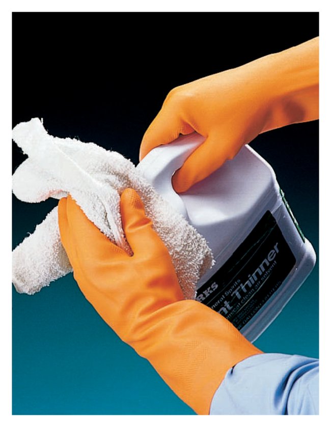 Ideal for fishing, chemical processing, agriculture, petroleum refining, plant maintenance, heavy equipment assembly and cleanup Made from unsupported natural latexOffer abrasion, puncture, and tear resistanceWith extra heavy-duty, cotton, flock liningLength: 13 in. (33 cm)Thickness: 29 milOrange