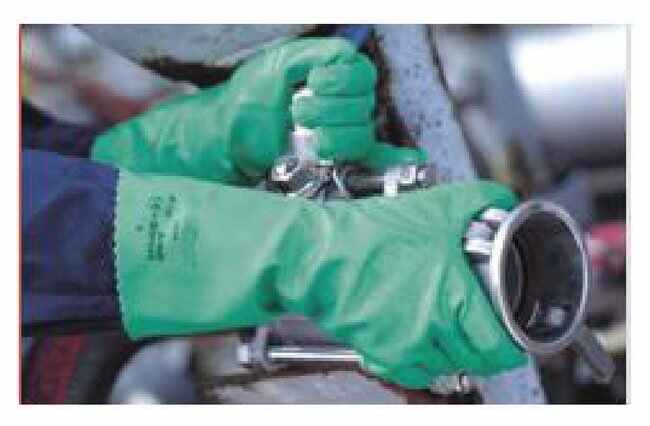 Cotton lined, reinforced nitrile gloves provide heavy-duty mechanical and chemical protection for wide variety of work environments.