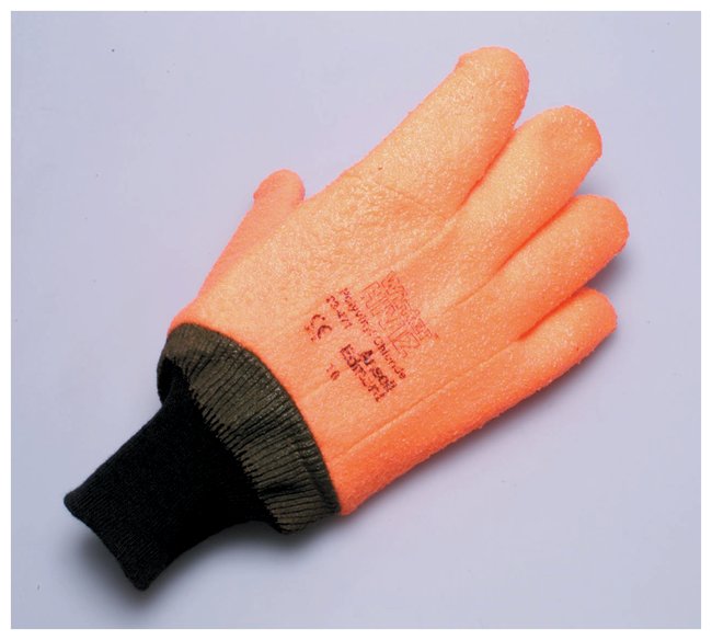 Textured PVC coating protects hands from abrasions and provides water, oil, and grease repellency. Foam insulation remains flexible, and helps to keep hands warm in cold applications.