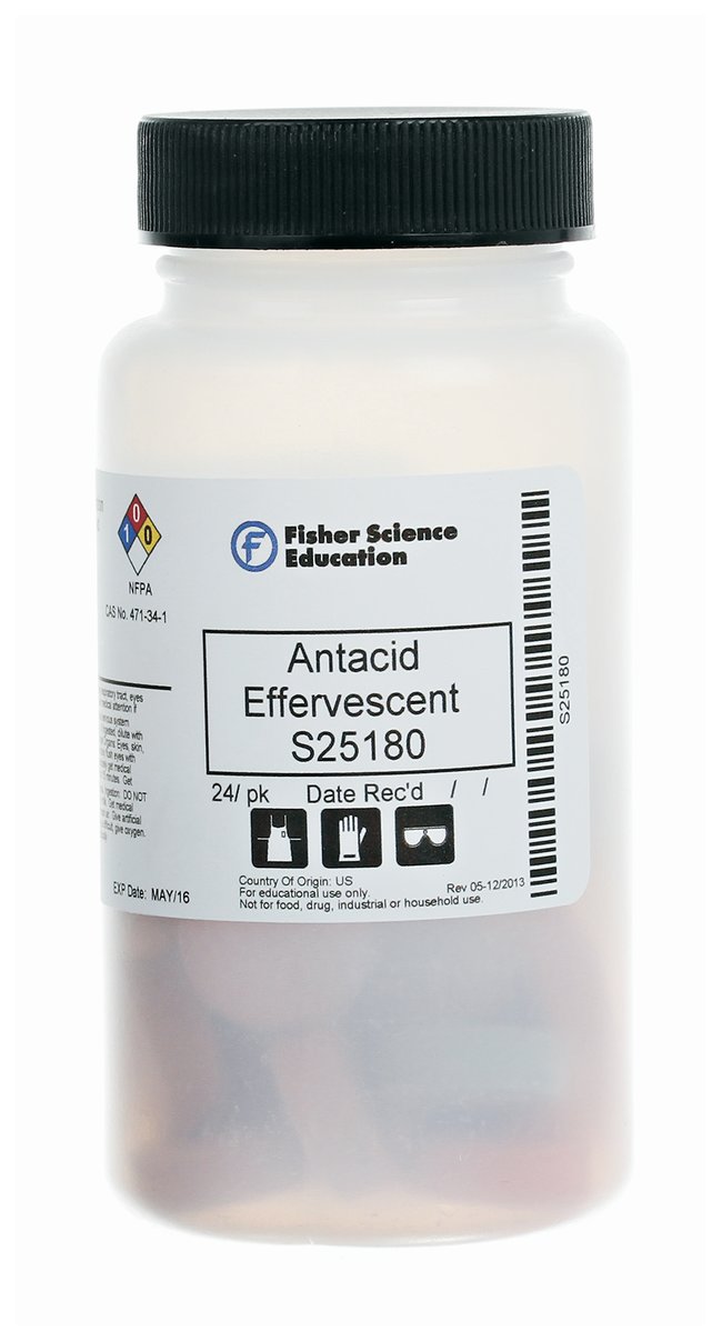 Antacid Effervescent, Contains sodium bicarbonate (50%), citric acid (30-40%) amd acetylsalicylic acid (10%), Each