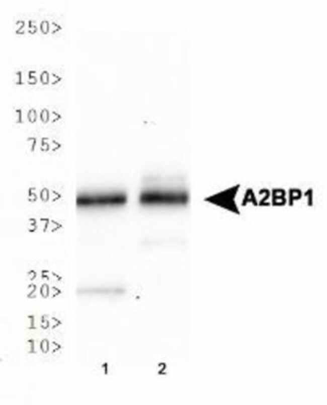 A2BP1 Monoclonal specifically detects A2BP1 in Human, Mouse samples. It is validated for Western Blot, Simple Western, Immunohistochemistry, Immunocytochemistry/Immunofluorescence, Immunoprecipitation, Immunohistochemistry-Paraffin, Immunohistochemistry-Frozen.