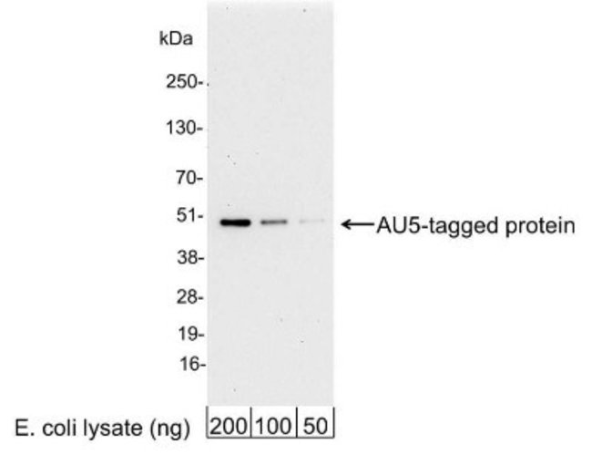AU5 Epitope Tag Polyclonal antibody specifically detects AU5 Epitope Tag in Epitope Tag samples. It is validated for Western Blot, ELISA, Immunocytochemistry, Immunofluorescence, Immunoprecipitation.