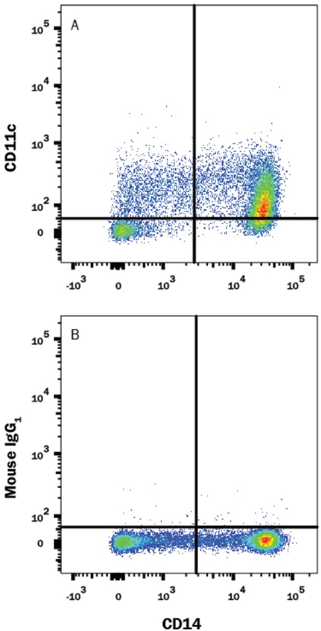 CD11c Monoclonal specifically detects CD11c in Human samples. It is validated for Flow Cytometry.