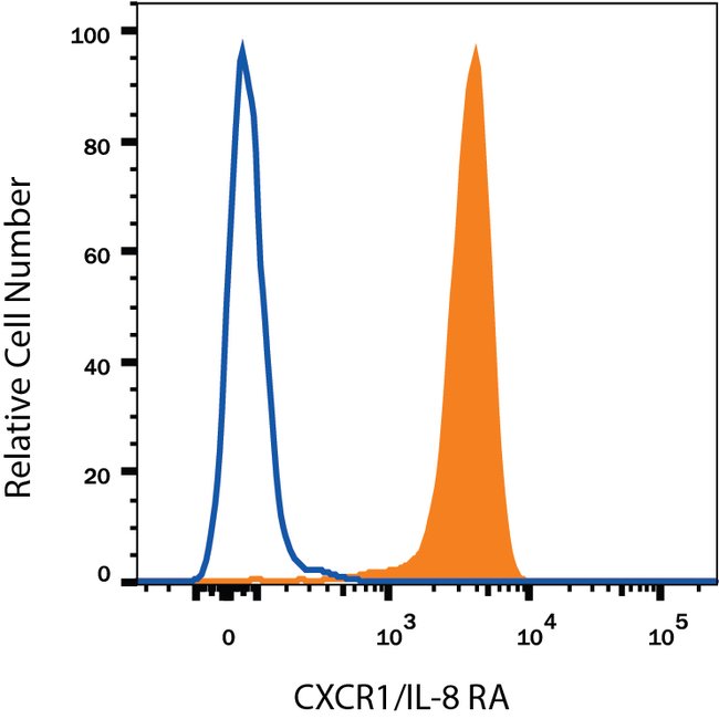 CXCR1/IL-8RA Monoclonal specifically detects CXCR1/IL-8RA in Human samples. It is validated for Flow Cytometry.