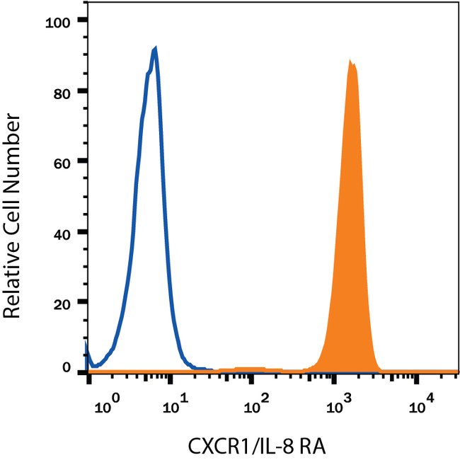 CXCR1/IL-8RA Monoclonal specifically detects CXCR1/IL-8RA in Human samples. It is validated for Flow Cytometry.
