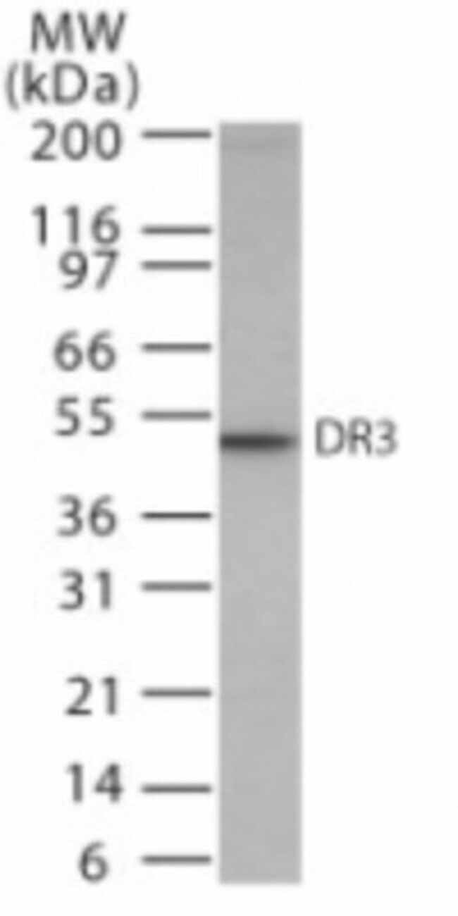 DR3/TNFRSF25 Polyclonal specifically detects DR3/TNFRSF25 in Human samples. It is validated for Western Blot.