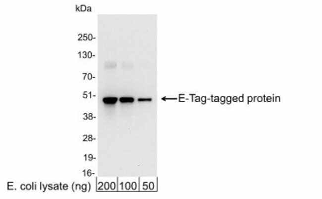 E-Tag Epitope Tag Polyclonal antibody specifically detects E-Tag Epitope Tag in Epitope Tag samples. It is validated for Western Blot, ELISA, Immunocytochemistry, Immunofluorescence, Immunoprecipitation.