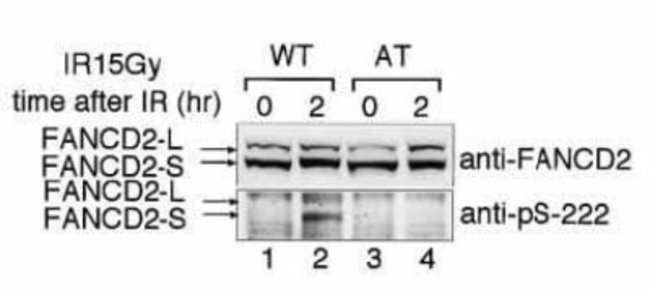 anti-FANCD2 (p Ser222), Polyclonal, Rabbit Polyclonal Antibody has been used in 2 publications, Each