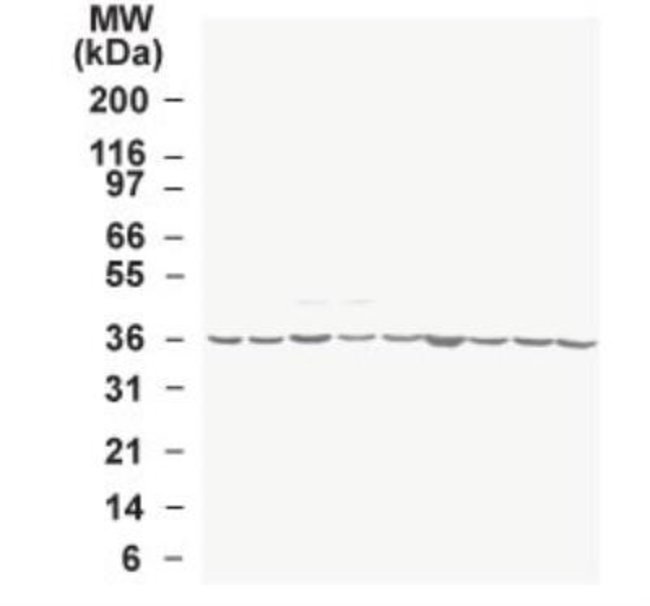 GAPDH Polyclonal specifically detects GAPDH in Human, Mouse, Rat, Porcine, Canine, Drosophila, Feline, Hamster, Primate samples. It is validated for Western Blot, Simple Western, Immunohistochemistry, Immunocytochemistry/Immunofluorescence, Immunoblotting.