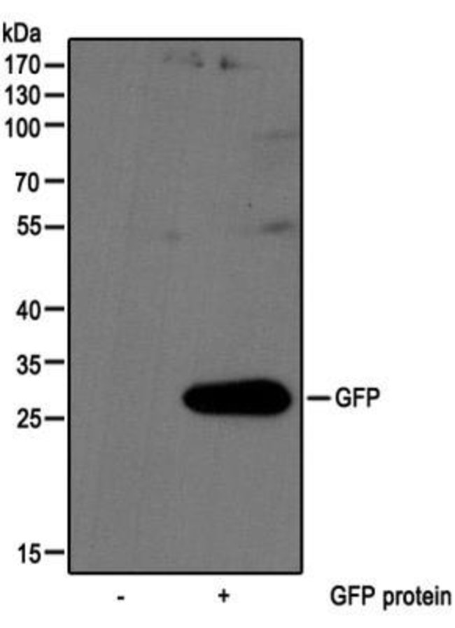 GFP Polyclonal specifically detects GFP in Non-species specific samples. It is validated for Western Blot.