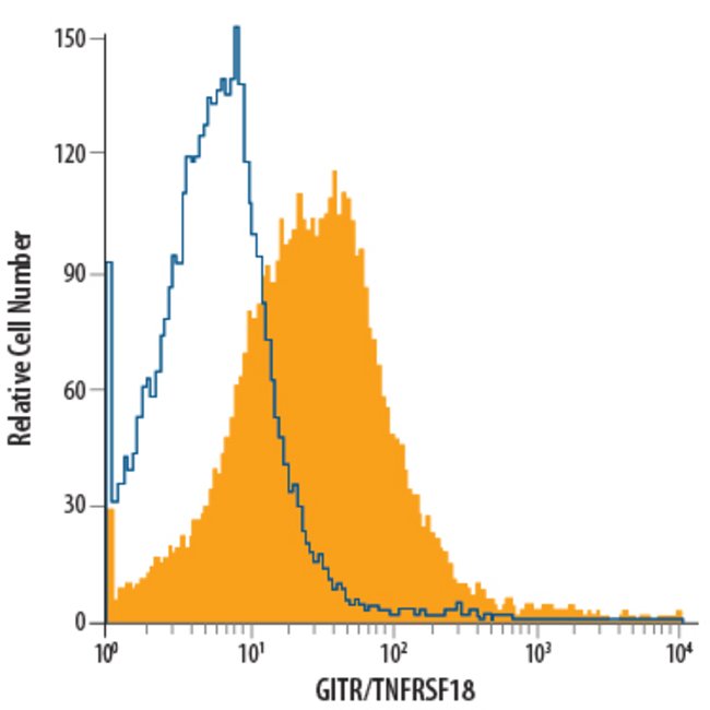GITR/TNFRSF18 Monoclonal specifically detects GITR/TNFRSF18 in Human samples. It is validated for Flow Cytometry.