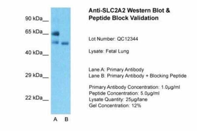 Glut2 Polyclonal specifically detects Glut2 in Human samples. It is validated for Western Blot.
